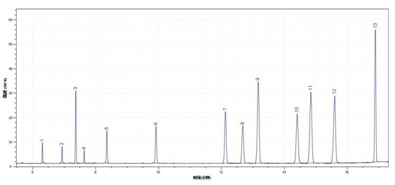 柱箱升温程序:50℃(2min)25℃/min 200℃(7min)20 ℃/min 280℃(5min)